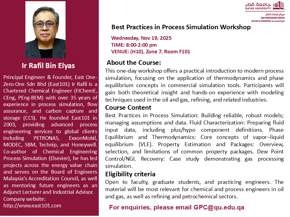 Venue: Qatar University Gas Processing Center